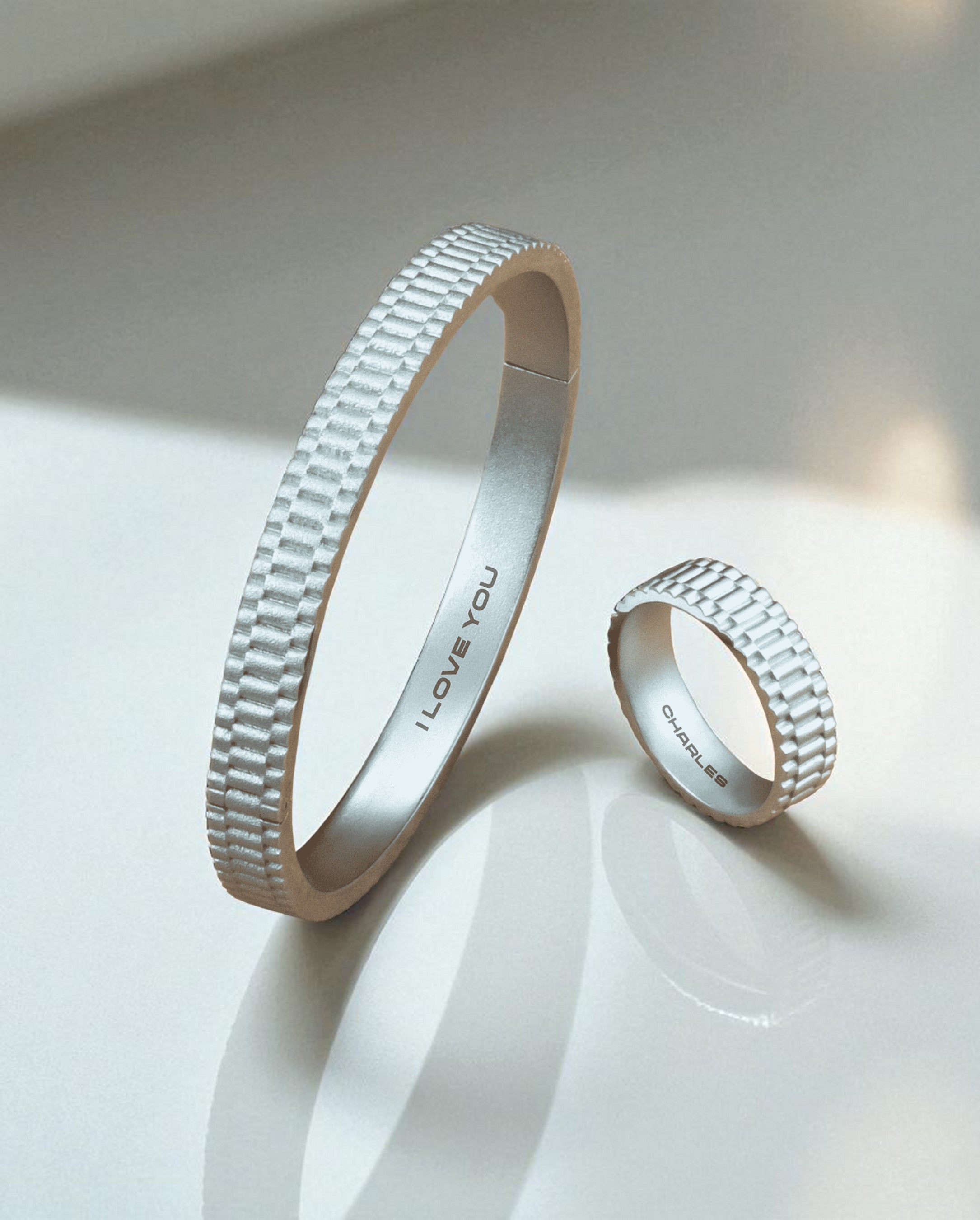 Le bracelet Regent Bangle de Wecord se distingue par une conception rigide — élégante, épurée, et résolument haut de gamme. Selon la fiche produit, il est conçu en argent sterling 925 avec un plaquage rhodium, ce duo garantissant un éclat lumineux et une très bonne résistance à l’usure.